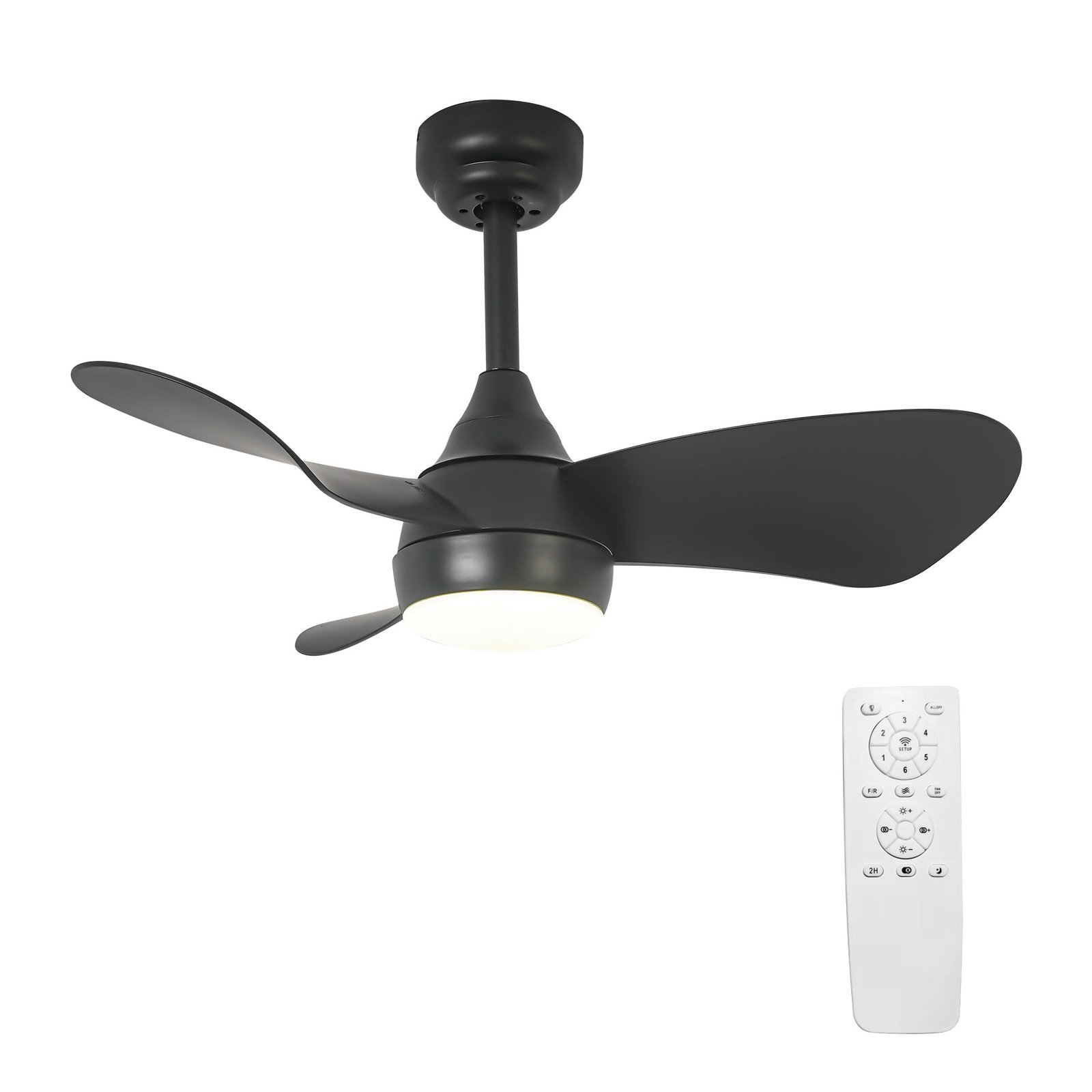 This compact ceiling fan with light features a 30-inch blade span, making it an ideal addition to home offices, children’s rooms, bedrooms, and other spaces. Its minimalist design is complemented by a 15-watt dimmable LED light that can be adjusted from warm white to natural, and even cool white light to cater to your varied lighting preferences. The CE-certified ceiling fan is equipped with a remote control for ease of use, and a reversible 6-speed motor that ensures a powerful airflow and quiet operation. This guarantees a tranquil environment for you to enjoy a peaceful sleep, day or night.