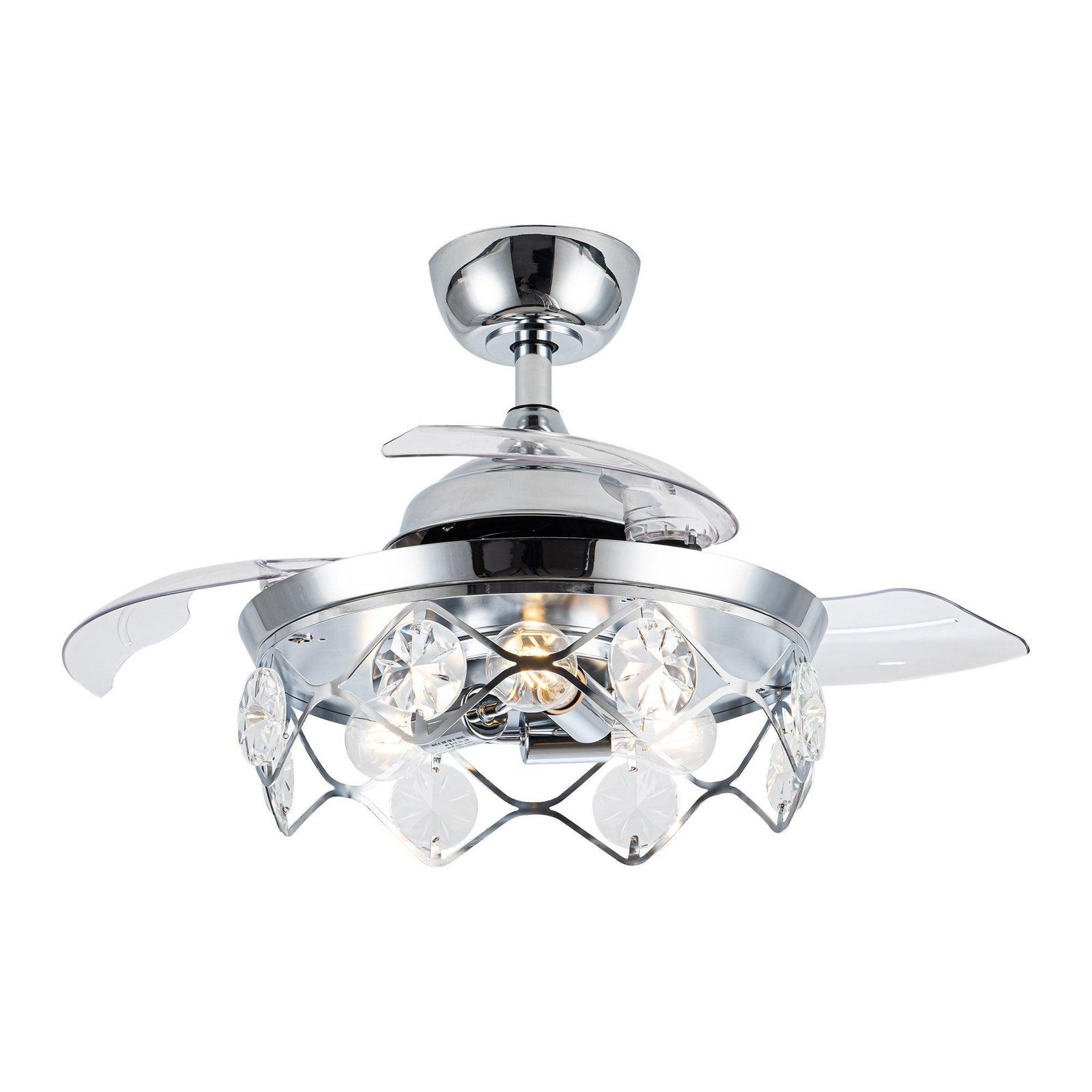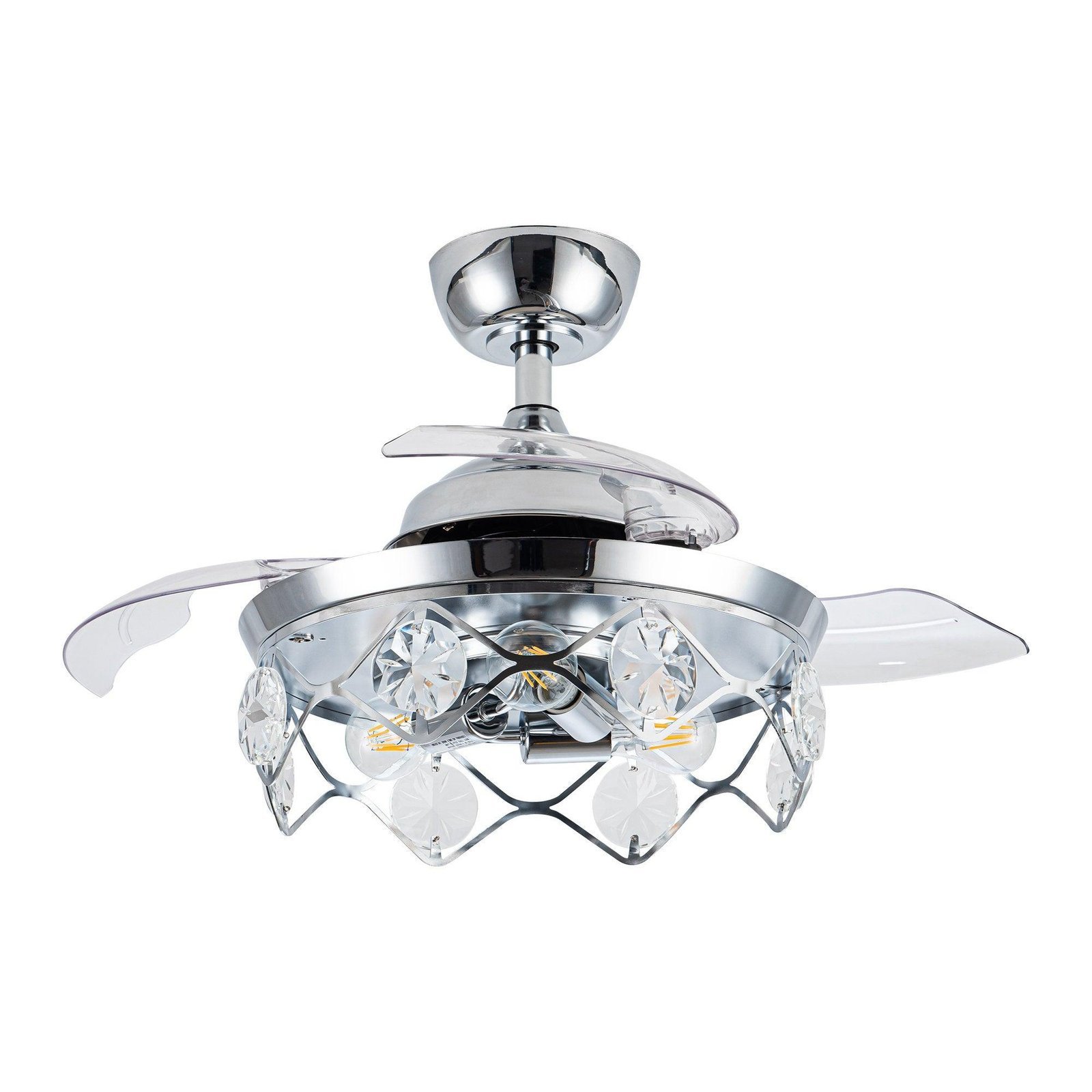 36″ Broxburne Modern Chrome Downrod Mount Crystal Ceiling Fan with Lighting and Remote Control