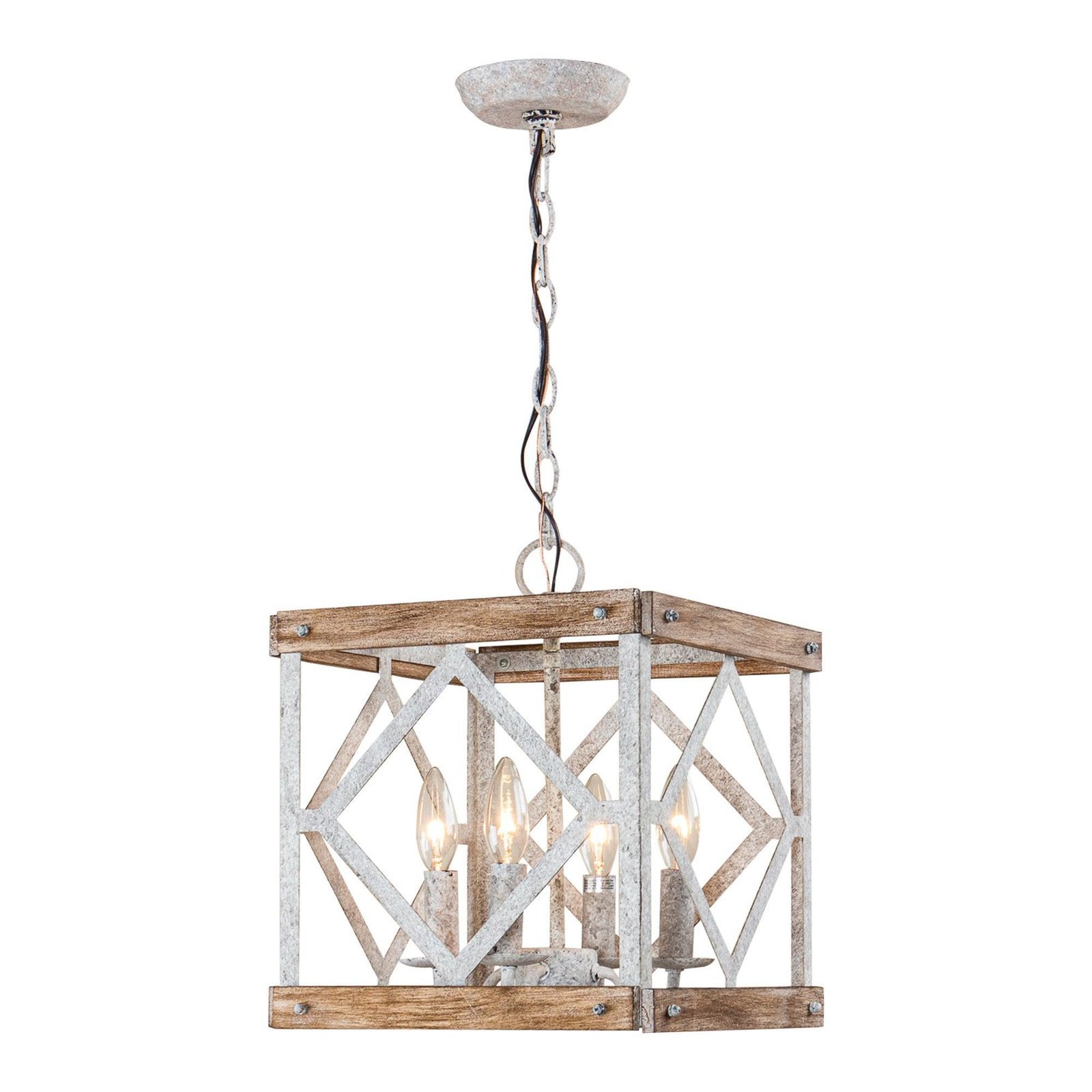 This Farmhouse White Pendant with 4 lights, this piece is a great option for larger rooms. The open caged shade exposes the candelabra style bulbs for a classic look perfect for providing ample task lighting.