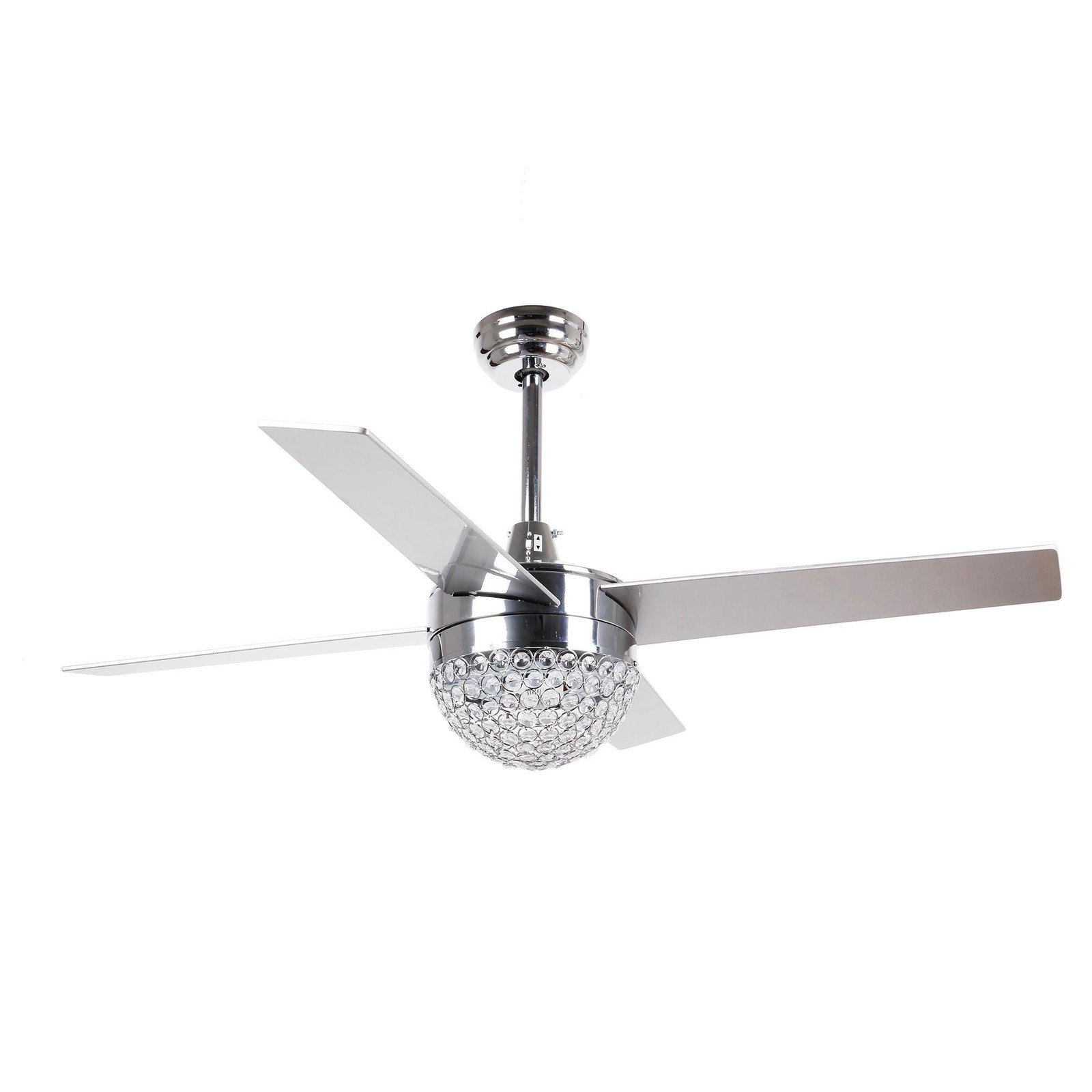It is a better combination of a ceiling fan and a crystal chandelier. The 4 wood blades with a chrome finish provide the cool fan a modern look. 3 Speeds handheld remote control makes it easy to change fan speed and light settings from a distance.