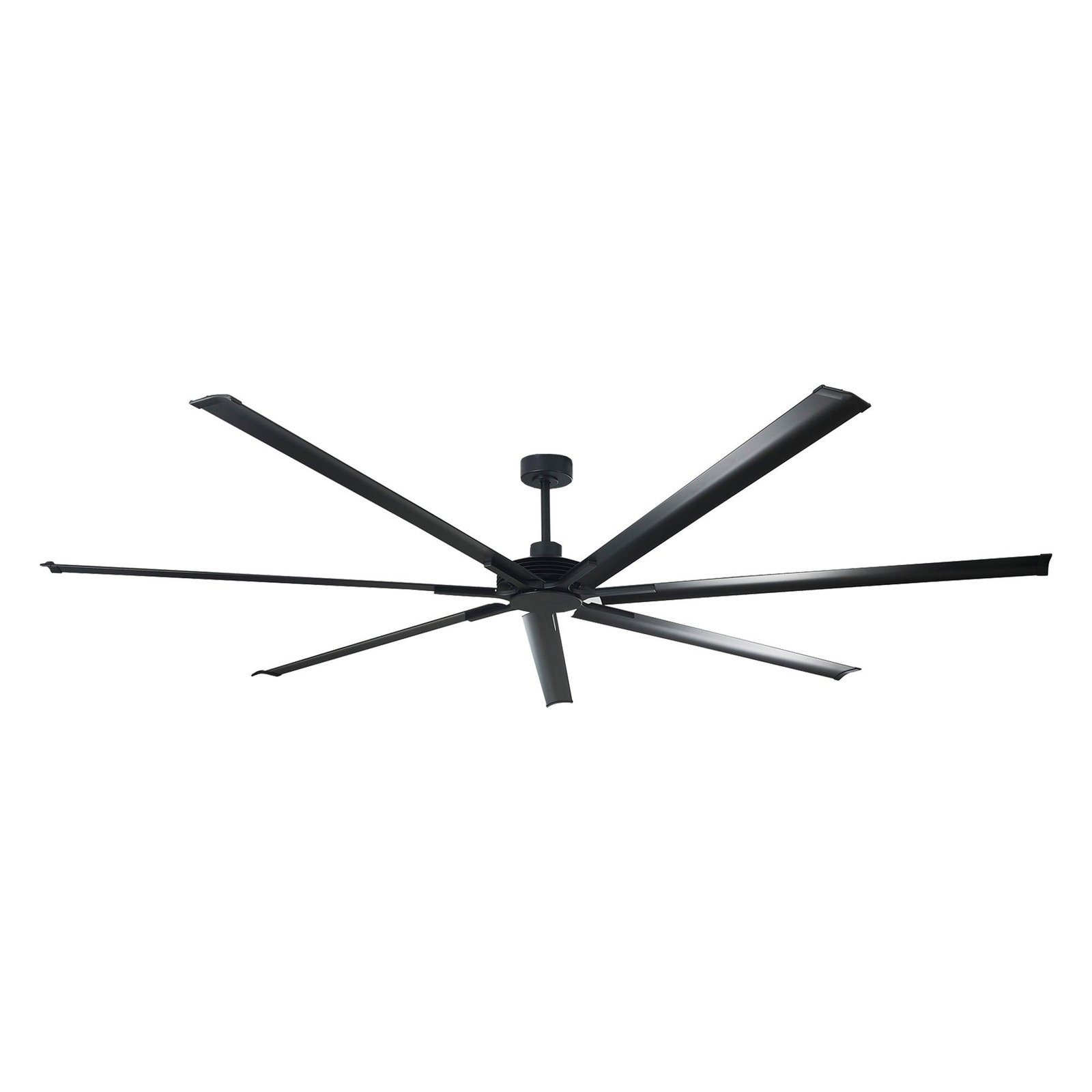 This 84-inch/100-inch industrial fan with remote control function is designed for large indoor spaces. The 7-blade aluminum black reversible fan blades perfectly complement the sophisticated urban edge. The suspension system supports 11-degree ceiling installation. Equipped with a 4-inch/10-inch boom for easy installation and use. It also comes with a 6-speed remote control. The maximum air volume value is 11200CFM/11500CFM. In summer, the air of this ceiling fan flows downward, producing a refreshing breeze. This ceiling fan reverses the flow in winter, spreading warm air evenly throughout the room.